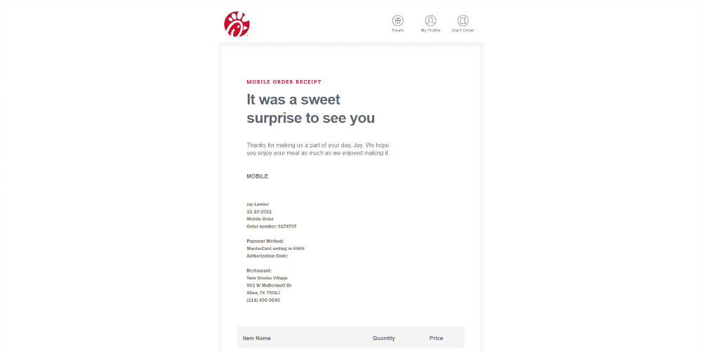 Remade a transactional email from Chick-fil-a using HTML, SASS, and Foundation for Emails Framework
