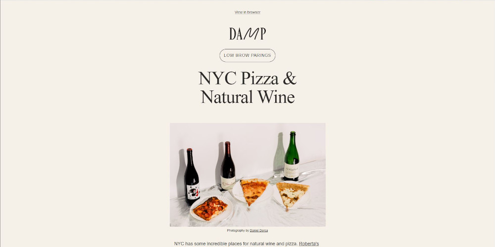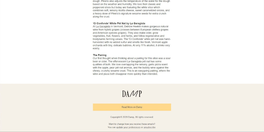 Remade a newsletter email from NYC Pizza & Natural Wine using HTML, SASS, and Foundation for Emails Framework